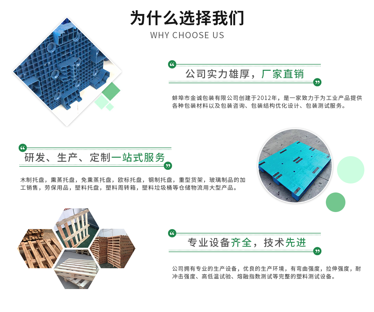蚌埠市金誠(chéng)包裝有限公司創(chuàng)建于2012年,是一家致力于為工業(yè)產(chǎn)品提供各種包裝材料以及包裝咨詢(xún)、包裝結(jié)構(gòu)優(yōu)化設(shè)計(jì)、包裝測(cè)試其中包括木制托盤(pán),熏蒸托盤(pán),免熏蒸托盤(pán),歐標(biāo)托盤(pán),鋼制托盤(pán),重型貨架,玻璃制品的加工銷(xiāo)售,勞保用品...
